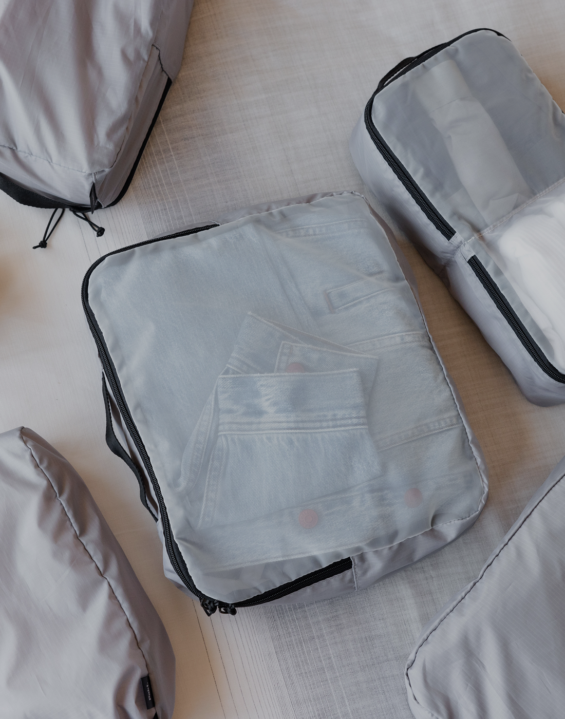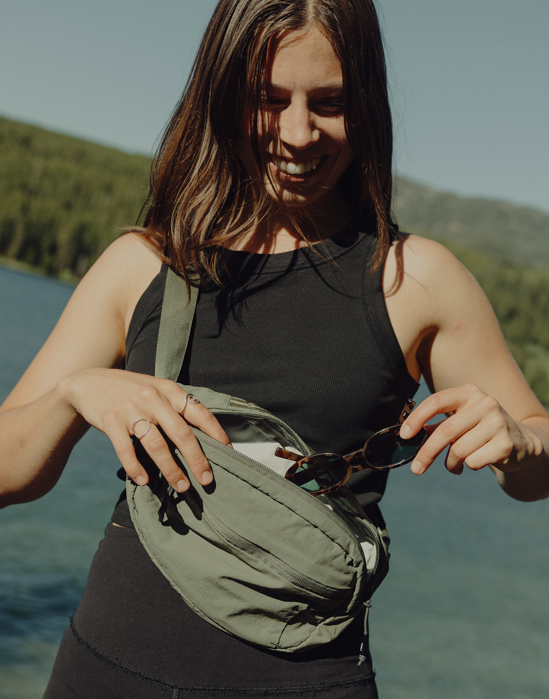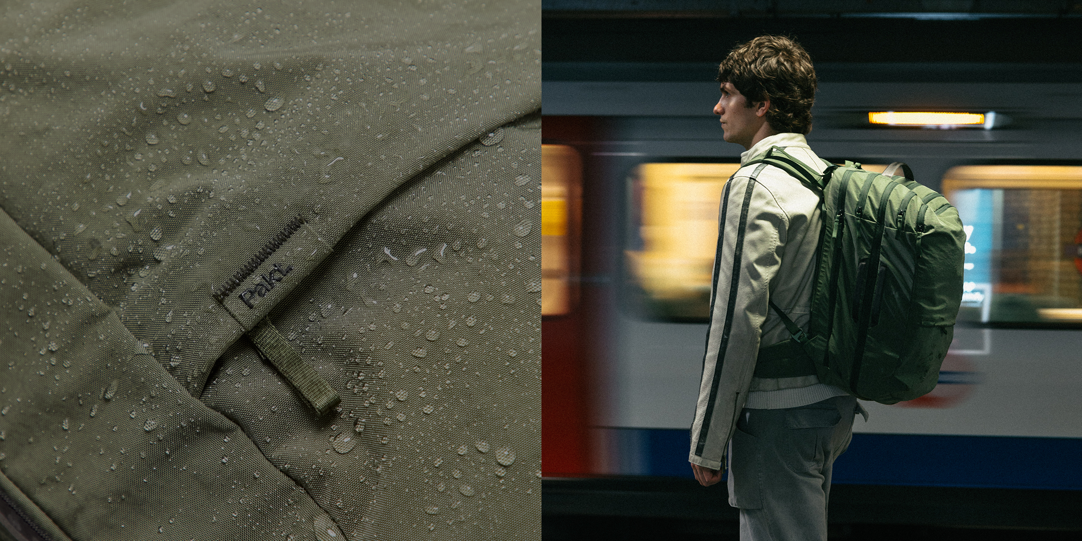 All fabrics are rNylon (recycled nylon), and are treated with a PFAS-free, durable water-resistant coating.
