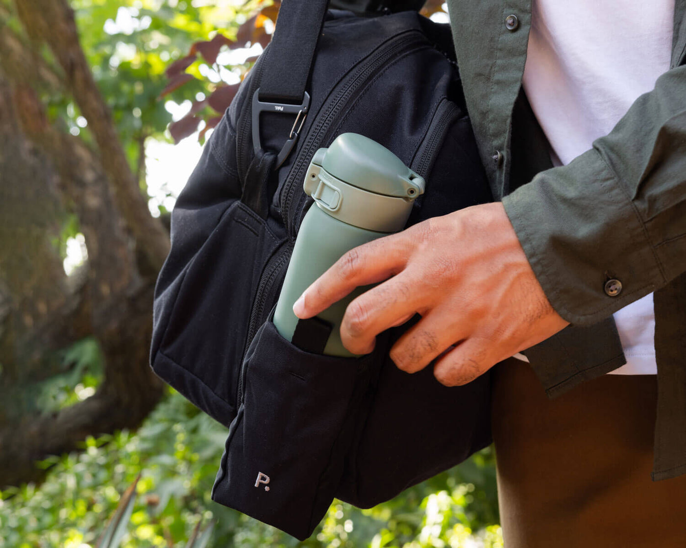 - Hide-away water bottle pocket